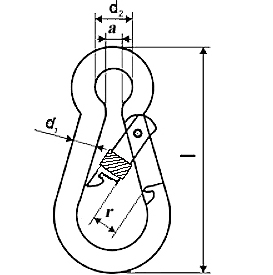Карабин из полукруглых и круглых проволок, и кованный, длиной 60мм с фиксатором. Имеет параметры согласно DIN 5299 D и грушевидную толстую форму. Грузоподъёмность по DIN 5299 D варьируется от 8 до 2000 кг, в зависимости от диаметра самого карабина.